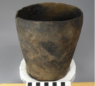 Most of the vessels that could be visually inspected (56 of 57) had flat bottoms. Rims were mostly flattened and irregular. Only one of the vessels had a neck, and it was a storage jar with traces of adhesive around the neck to seal it closed with a lid or small pot. Both cooking vessels and containers had tabular handles. Cooking vessels without handles were also observed during this study. Of the 57 vessels studied in person and from photos, 36 were associated with cooking use. The remainder were used as containers for various items, including basketry materials.